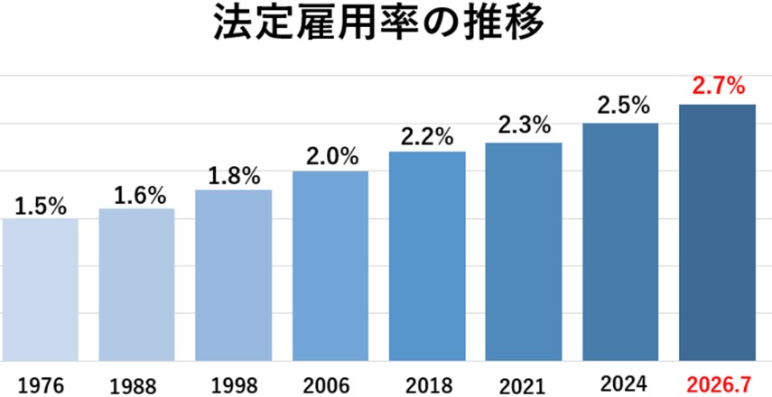 2026年7月~法定雇用率2.7%に引き上げ。従業員40人以上の企業が対象に。